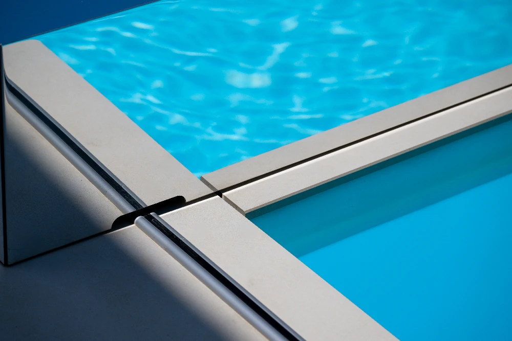 Dieses Konzept ermöglicht ein dichtes Verschliessen des Beckens bei gleichzeitig klarer, minimalistischer Linienführung.