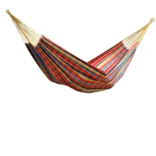 Tauchen Sie ein in einen Kokon des Komforts mit der Brasilianischen Hängematte für eine Person – gestreift in Rot, Gelb, Schwarz und Blau. Der Stoff aus 100 % hochwertiger Baumwolle, direkt inspiriert von der brasilianischen Handwerkskunst, bietet ein unvergleichliches Gefühl von Weichheit. Das dicke und robuste Gewebe gewährleistet eine hervorragende Widerstandsfähigkeit und lässt gleichzeitig die Haut atmen für absolute Entspannungsmomente.Sein gestreiftes Design in lebendigen Farben – Rot, Gelb, Schwarz und Blau – erinnert an die Eleganz traditioneller Kilts und bringt einen Hauch von Originalität in Ihren Ruhebereich. Ob drinnen oder draußen, es fügt sich perfekt in jedes Dekor ein.Dank seiner sorgfältigen Verarbeitung gewährleistet diese Hängematte eine lange Lebensdauer. Sie ist wetterfest, UV-beständig und farbecht, selbst nach vielen Sonnenexpositionen. Ideal für den langfristigen Einsatz im Garten, auf einer Terrasse oder unter einer Pergola.Mit einer Tragfähigkeit von bis zu 115 kg ist sie darauf ausgelegt, einer Person optimalen Komfort zu bieten. Der dicke Stoff passt sich natürlich den Konturen des Körpers an und vermittelt ein beruhigendes Gefühl der Schwerelosigkeit. Ob zum Lesen eines Buches, für ein Nickerchen oder einfach um dem Vogelgezwitscher zu lauschen, wird sie schnell zu Ihrem bevorzugten Rückzugsort.Ihr atmungsaktives Material verhindert jegliches Beklemmungsgefühl, selbst bei warmem Wetter. Sie lässt sich in wenigen Minuten mit geeigneten Befestigungen installieren. Gurte und Aufhänger separat erhältlich.Gönnen Sie sich einen Moment der Flucht und lassen Sie sich in dieser brasilianischen Hängematte wiegen, die Tradition und Komfort vereint.