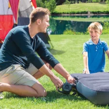 Das kompakte und ergonomische Design dieser Pumpe macht sie extrem leicht zu transportieren. Mit einem Gewicht von nur 1,10 kg passt sie problemlos in den Kofferraum Ihres Autos oder in eine Strandtasche. Das macht sie zum idealen Begleiter für alle Ihre Ausflüge mit der Familie oder Freunden, sei es beim Camping, an einem Strandtag oder bei Wasserabenteuern.
