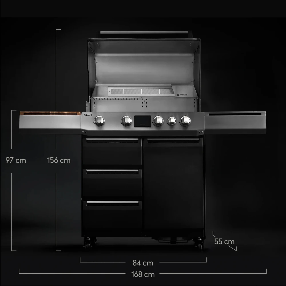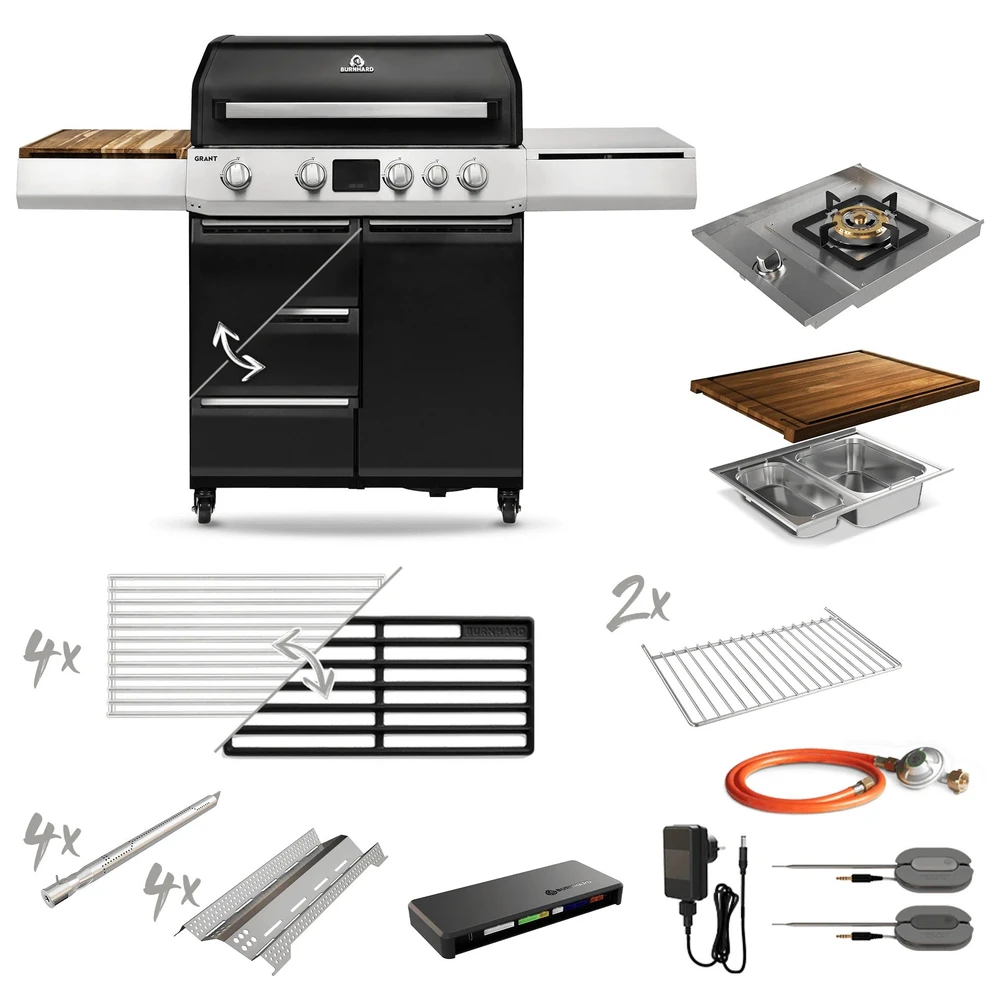 Ce modèle est pensé pour offrir une expérience fluide pendant la préparation et le service. Son format favorise l’organisation des aliments, la gestion des timings et un rythme de cuisson constant, même lorsque plusieurs plats sont lancés en parallèle.En résumé, Burnhard Grant Upgrade est une solution premium pour celles et ceux qui veulent un barbecue gaz modulaire robuste, puissant et polyvalent, capable de suivre des sessions barbecue ambitieuses.