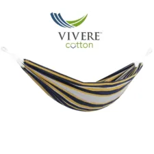 Plongez dans une expérience de détente inégalée avec le Hamac Brésilien 2 places rayé gris, jaune et bleu marine de la marque Vivere.Présentant des rayures élégantes dans des tons de Gris, Jaune et Bleu Marine, cet accessoire d’extérieur est un véritable hymne au confort et à l’esthétique. Conçu pour accueillir 2 personnes, il supporte un poids maximal de 205 kg, vous permettant de partager des moments de relaxation avec un proche.Confectionné en 100% coton, ce hamac promet une douceur et une résistance exceptionnelles, grâce à une origine prestigieuse : le Brésil, reconnu pour la qualité de ses textiles.Facile à installer (sangles vendues séparément), vous offrant ainsi la liberté de choisir la méthode d’accrochage selon vos besoins. Optez pour la durabilité et le confort avec ce hamac, alliant savoir-faire traditionnel et design contemporain. Que ce soit pour un moment de lecture à l’abri du soleil ou une sieste rafraîchissante à l’air libre, ce produit transformera votre extérieur en un espace de détente privilégié.