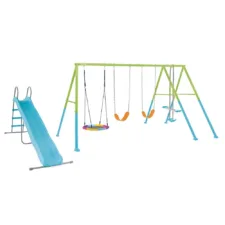 Offrez à vos enfants le terrain de jeux rêvé avec le Portique-balançoire 2 couleurs – 5 agrès en vert et bleu. Éveillez leur créativité et leurs sourires grâce à ce formidable ensemble de jeux conçu pour les jeunes aventuriers de 3 à 10 ans. Doté d’un design robuste et coloré, il deviendra rapidement le cœur de rassemblement de votre jardin. Imaginer, rire et jouer n’aura jamais été aussi excitant !