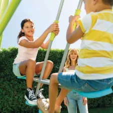 La sécurité est une priorité inébranlable lors de la conception de ce portique. Ses poignées ergonomiques et ses chaînes en plastisol protègent les petites mains même dans les moments de jeu les plus intenses. Avec une structure en métal résistant aux intempéries, le portique garantit non seulement une durabilité exceptionnelle mais également des séances de jeu sans soucis. Les parents peuvent être sereins, sachant que leurs enfants profitent d’un espace de jeu sécurisé.